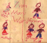 | This is the oldest of my drawings still in existance. I found this in a pile of precious keepsakes of my grandmother's after she passed away. I think I was in the first grade when I made this drawing, mostly to show off my writing and spelling skills for my grandparents...=) |